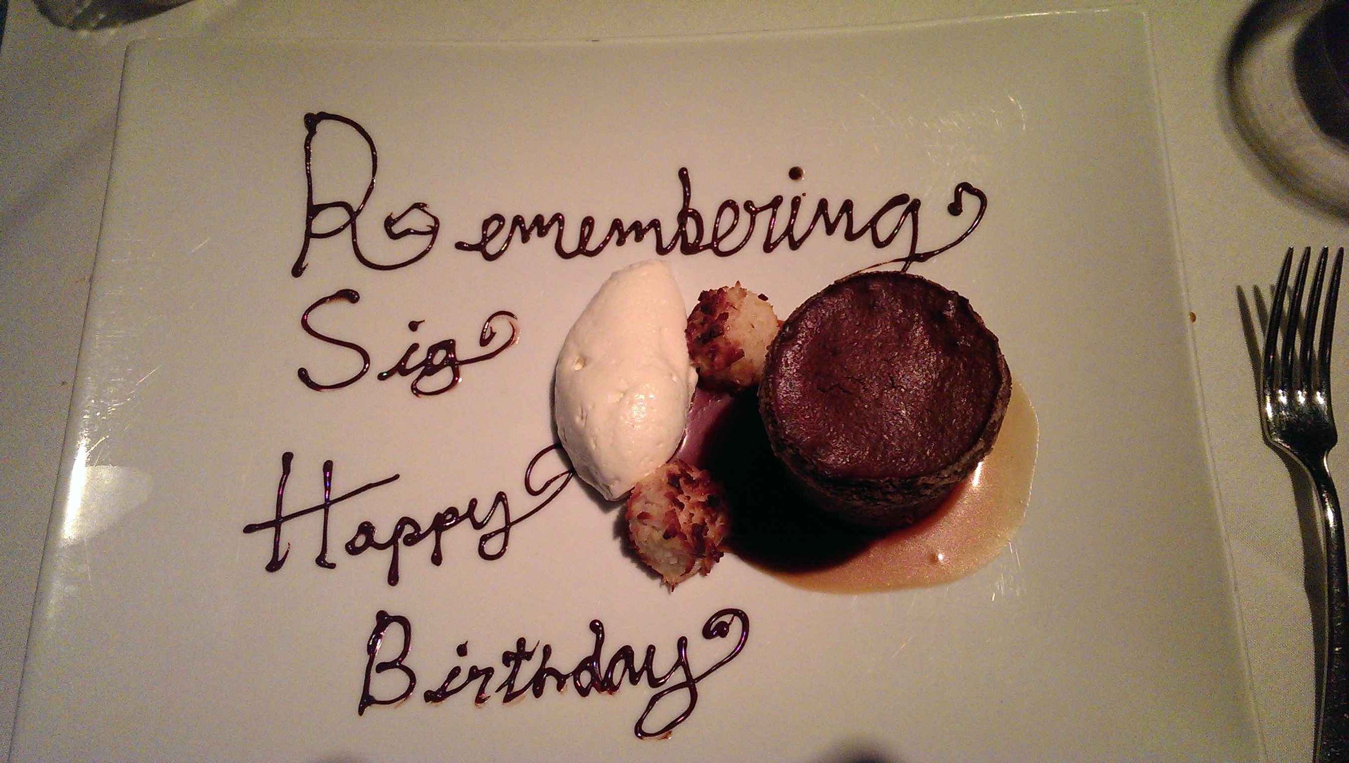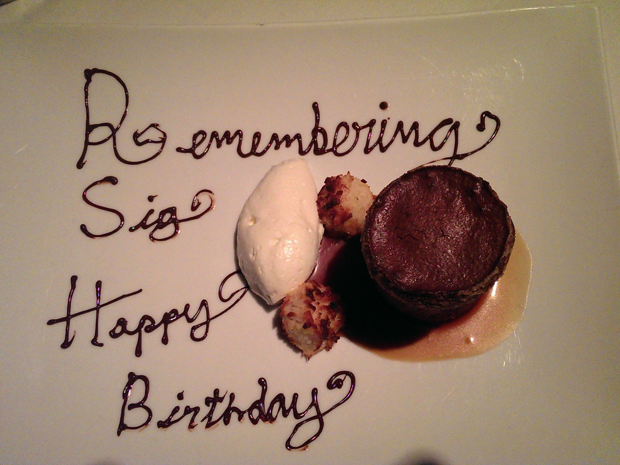 In that spirit, I made reservations at The Coach House for a birthday dinner in honor of Jon’s dad. I spoke with one of the owners, and she kindly arranged for a special dessert for the occasion. I only told Jon that we were going out to dinner that evening – he had no idea where until we pulled up to the restaurant.