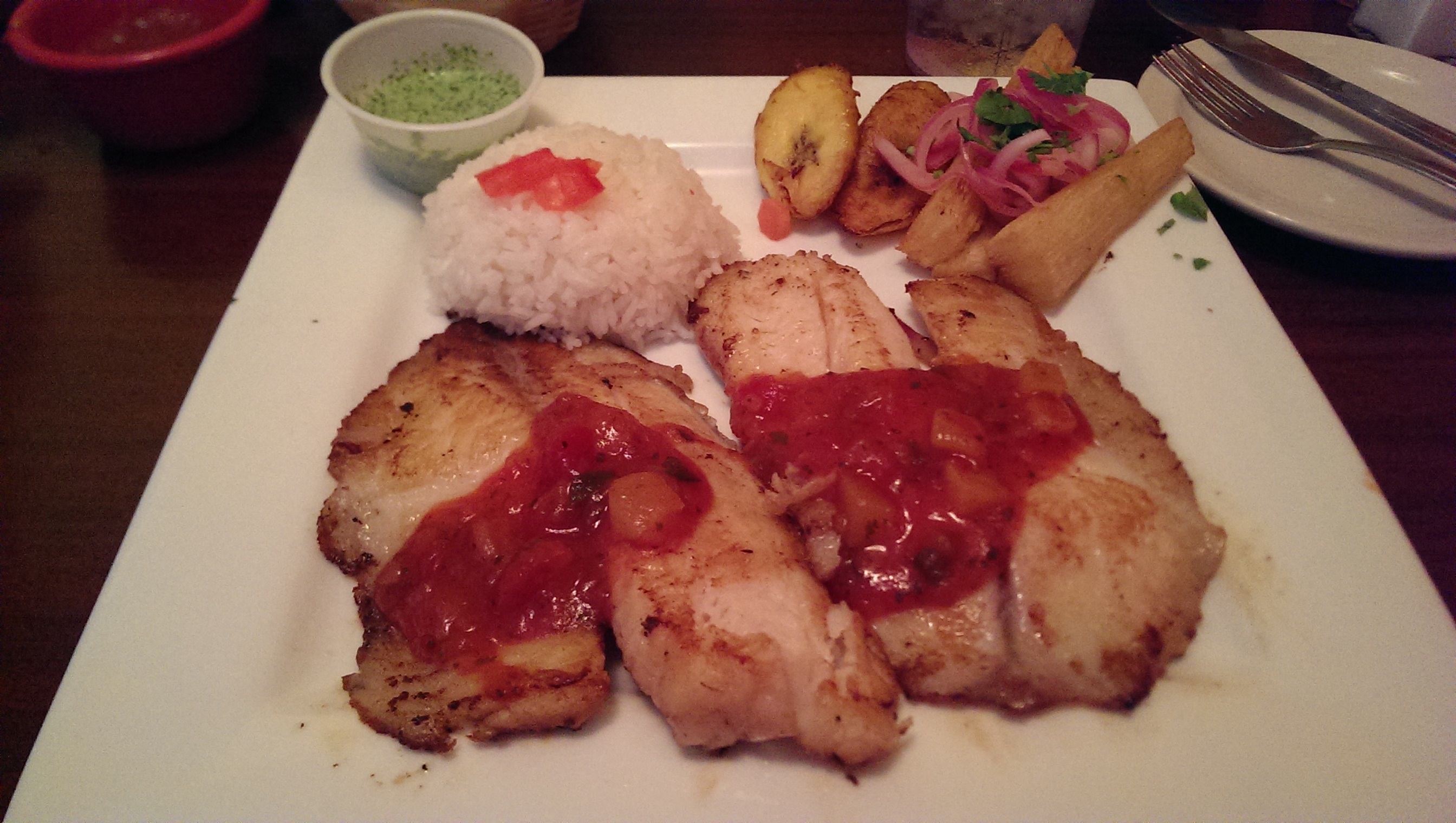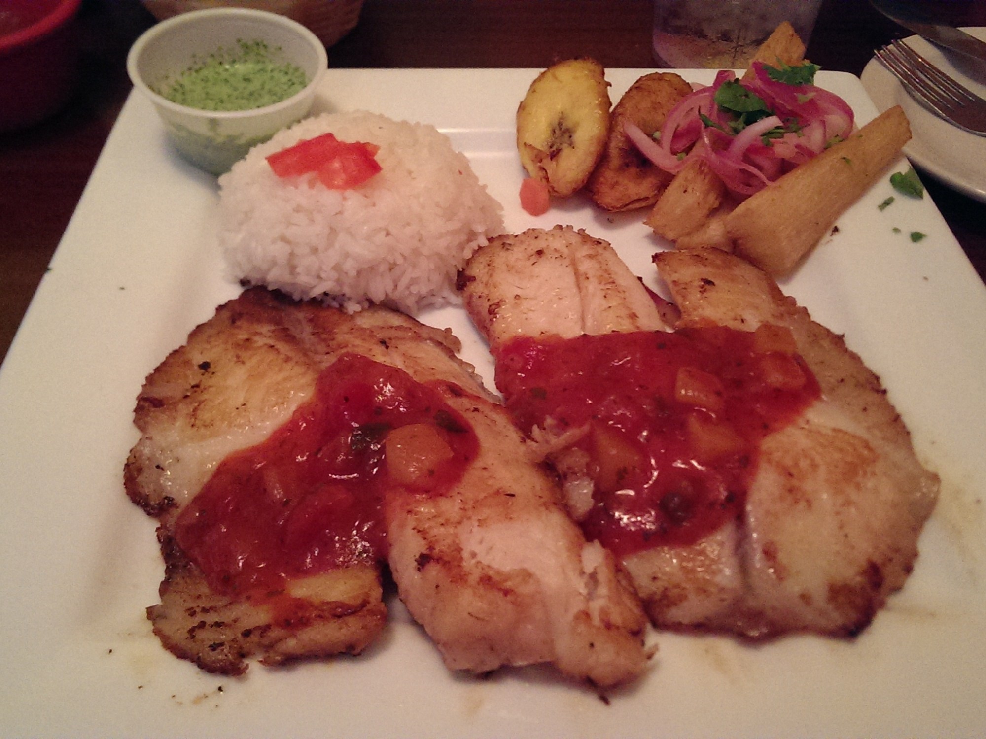 I had the grilled tilapia, and even though it was a sizable portion, I managed to finish the entire plate. Yum. Great way to end the week. The plantains were my favorite part of course.