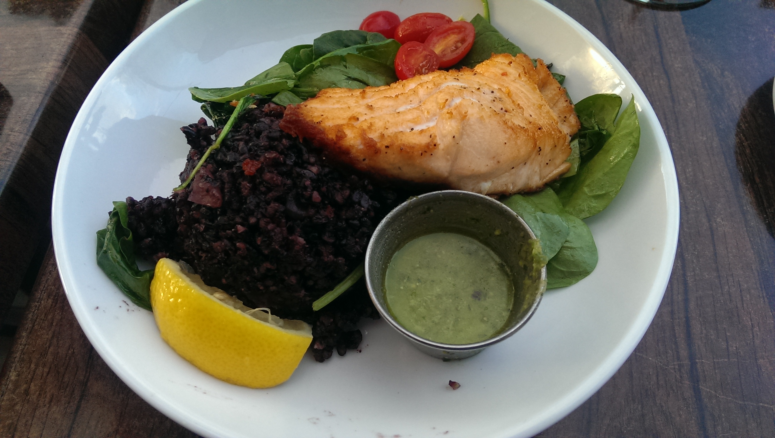 Ripley ordered a beautiful salad that was nearly a work of art in itself. Jon chose a pasta entrée with chicken that looked fantastic, and I stuck with my usual seafood.