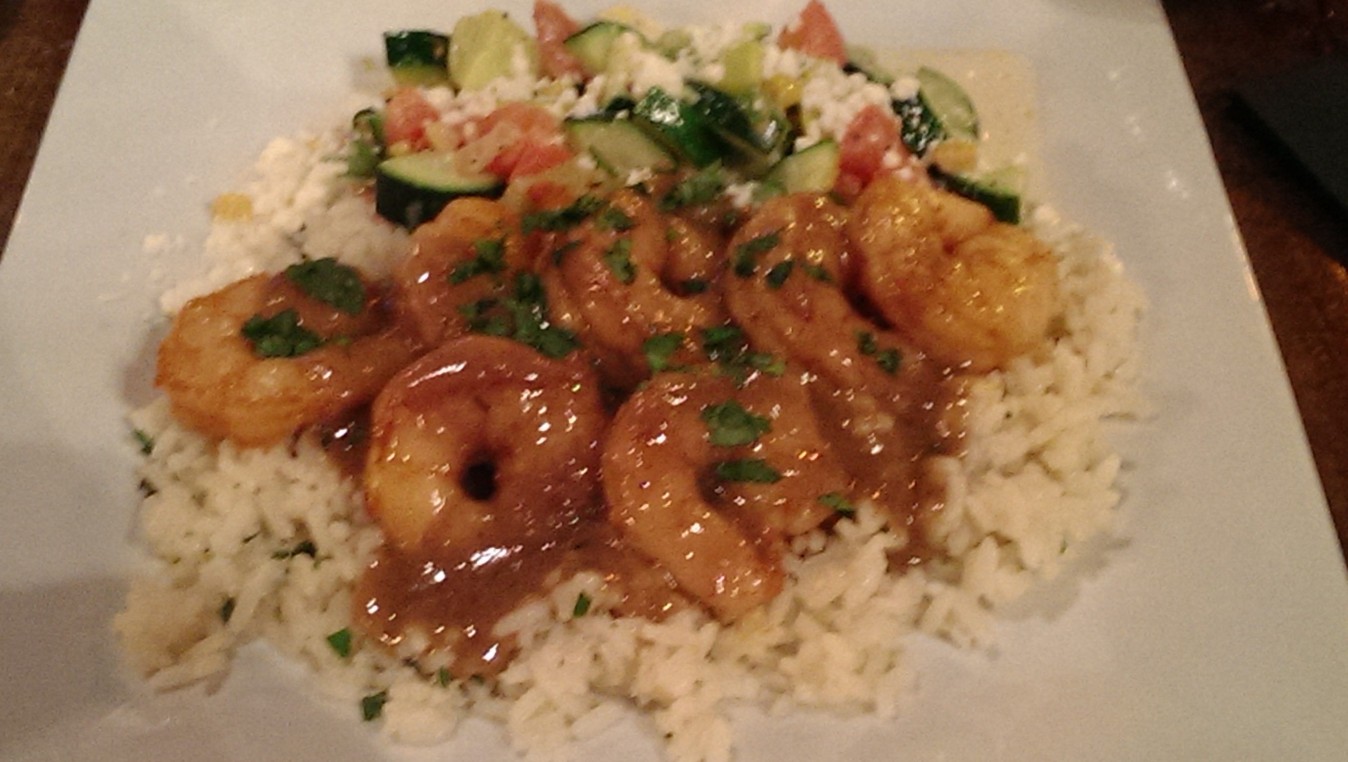 We met Ripley and her boyfriend, Joe, at the restaurant, and it was in the middle of the “happening” part of downtown Tucson, where there are a number of restaurants, bars, tattoo parlors, shops and lots going on. Barrio Cuisine was beautiful inside, very contemporary with an industrial feel. We started with simple salads and then our entrées ranged from seafood (mine) to chicken (Jon, Ripley and Joe), and it was really good. Ripley said her chicken literally fell off the bone and was delicious. My shrimp was in a sauce that was more comfort food than anything. I loved it.